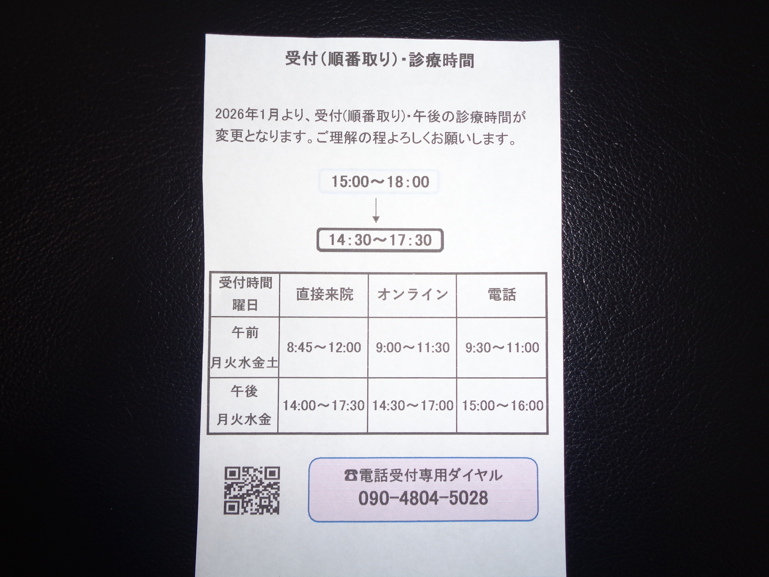 2026年1月より、お電話での順番取りの時間帯が変更しています。